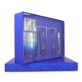 El set incluye una fragancia de 100 ml de Eau de Toilette, un champú y un aftershave, junto con un mini producto adicional. Este conjunto es ideal para quienes buscan una experiencia completa de cuidado personal, combinando aroma fresco y limpieza. Perfecto para el uso diario, proporciona una sensación de frescura y bienestar.